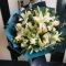 快乐无限-19枝香槟玫瑰,4枝多头(4头及以上)白色香水百合,搭配尤加利,黄莺