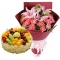 快乐到老-19朵粉色康乃馨 2支粉百合 8寸水果蛋糕